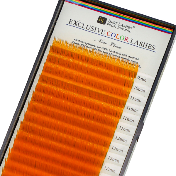 Vysoce kvalitní oranžové řasy určené k prodlužování řas metodou řasa na řasu. Řasy jsou baleny technikou easy off, která umožňuje snazší a rychlejší manipuci. Díky jejich lehkosti nezatěžují přírodní řasu. Řasy jsou zpracované unikátní technologií. Materiál řas je jako u všech ostatních u nás na trhu hypoalergenní monofil s přídavkem hedvábí, který zaručuje pružnost, jemnost a lesk těchto řas. Tyto řasy jsou vhodné pro vzláštní situace, jako jsou plesy, svatby atd... Mix délek: 9 mm - 1 řádek, 10 mm - 1 řádek, 11 mm - 4 řádky, 12 mm - 4 řádky, 13 mm - 4 řádky, 14 mm - 2 řádky.