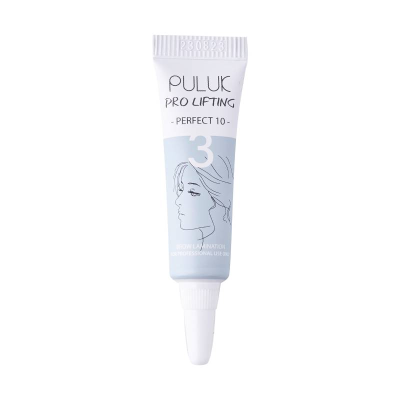 Keratin pro laminaci obočí PRO LIFTING č. 3 PULUK důkladně čistí obočí od zbytků kompozic 1 a 2 a také zajišťuje hluboké pronikání komplexu užitečných látek.